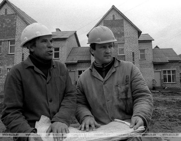 Строители возводят поселок для переселенцев. Дрибинский район, 1991 год. Фото из архива