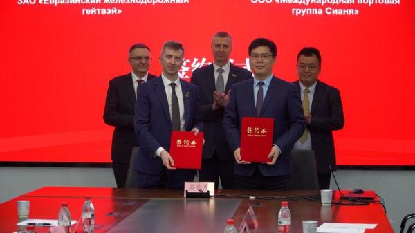 Кроме того, состоялась церемония подписания двустороннего документа между ЗАО «Евразийский железнодорожный гейтвэй» и ООО «Международная портовая группа Сианя», которым предусмотрено развитие железнодорожного контейнерного терминала «Грейтпорт», строящегося в парке.
