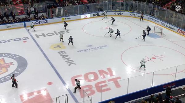 Стартовая игра серии до четырех побед прошла в Магнитогорске. Ключевым в поединке стал первый период, где гости оторвались на три шайбы. В оставшиеся две трети матча команды поразили ворота друг друга по два раза, в итоге 5:2 в пользу «Ак Барса», дубль за который оформил Александр Хмелевски. Белорусский защитник казанского клуба Степан Фальковский провел на льду 17 минут, заблокировал четыре броска соперников и исполнил два силовых приема. Его соотечественник из стана уральцев Данила Паливко отыграл 13 минут и дважды бросил в створ.