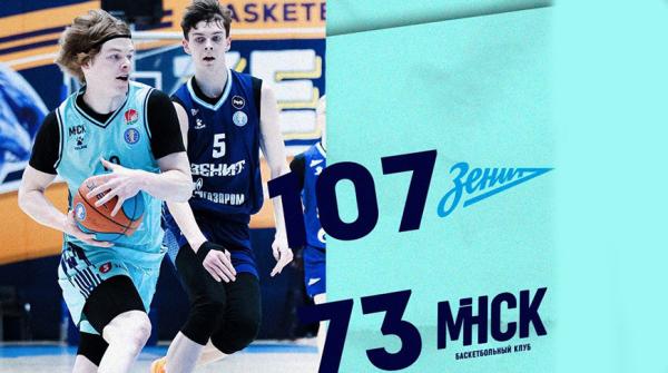 Сегодня во втором поединке четвертьфинальной серии белорусы проиграли в Санкт-Петербурге местному «Зениту» со счетом 73:107. Самым результативным в составе гостей стал Давид-Масэнге Муккете, в активе которого 21 очко, на два балла меньше набрал Данила Семенюк. В первом матче серии в Минске подопечные Дмитрия Колтунова дали бой лидеру сезона, но все же уступили с разницей в семь баллов — 87:94. Для минчан это был второй сезон в молодежной лиге. В нынешнем регулярном чемпионате они заняли восьмое место, набрав 78 очков в 56 проведенных встречах — по 26 побед и поражений. Год назад «МИНСК» также вышел в четвертьфинальную стадию, где уступил московскому МБА-МАИ, который потом стал чемпионом.