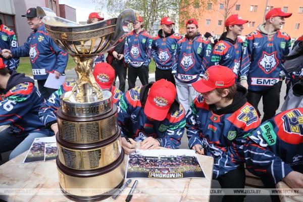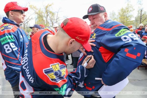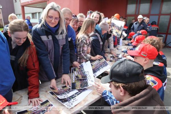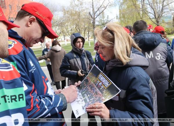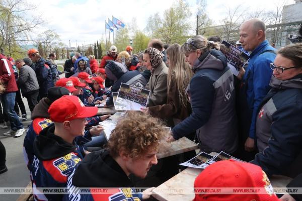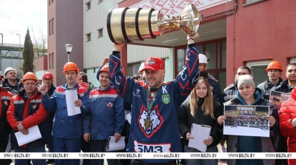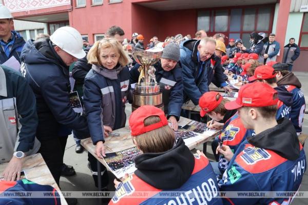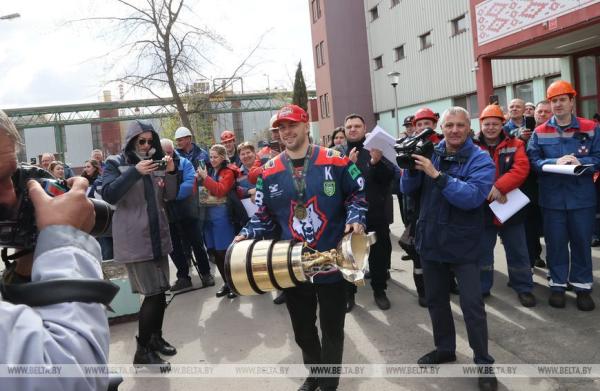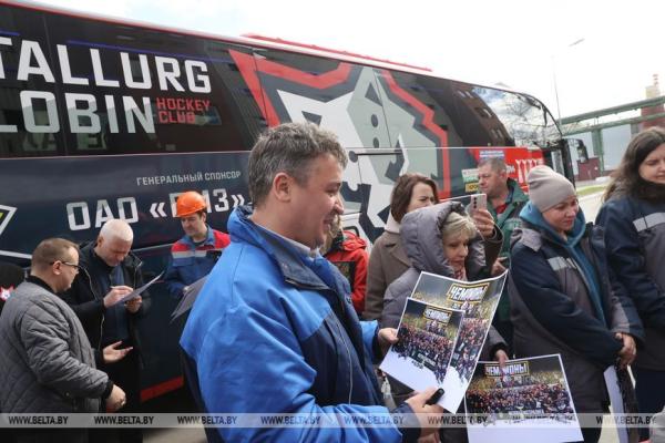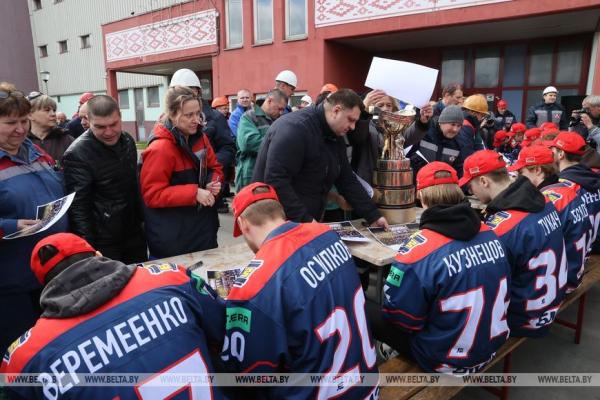 28 апреля, Жлобин /Корр. БЕЛТА/. Хоккейная команда «Металлург», которая в пятый раз завоевала Кубок Президента, встретилась 28 апреля с работниками Белорусского металлургического завода (БМЗ), болельщиками города, передает корреспондент БЕЛТА.