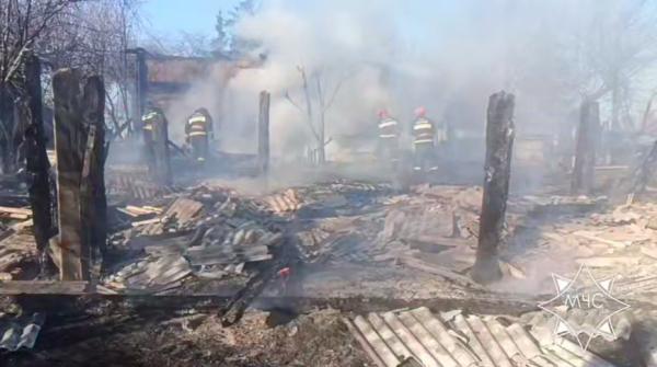 В результате происшествия уничтожены нежилой дом и две хозпостройки, поврежден жилой дом. На месте пожара работало 6 единиц техники МЧС. Причина случившегося устанавливается.
